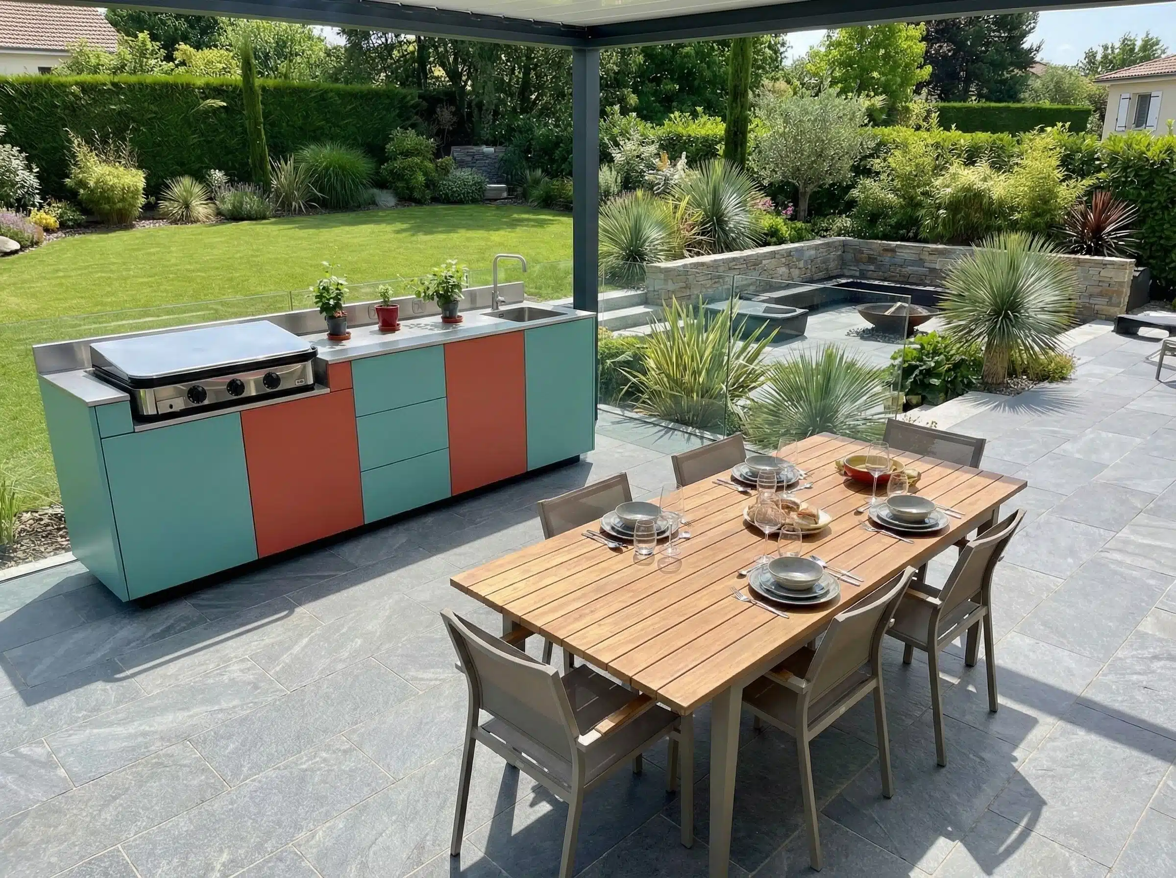 Nos professionnels de la cuisine extérieure utilisent des matériaux durables et résistants aux conditions extérieures, notamment pour les plans de travail et les façades. L’aluminium, les finitions haut de gamme et la robustesse des composants garantissent que votre cuisine extérieure reste belle et fonctionnelle pendant de nombreuses années.